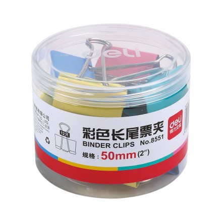 • 得力8551-1#彩色長(zhǎng)尾票夾51mm(筒裝)(混)(12只/筒)